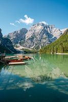 Prager Wildsee in de Dolomieten met de vloer en de loopbrug
