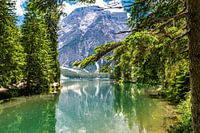 Pragse Wildsee of Lago di Braies in de Dolomieten tijdens een mooie lentedag in de Italiaanse Alpen.