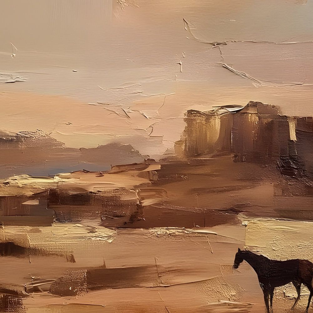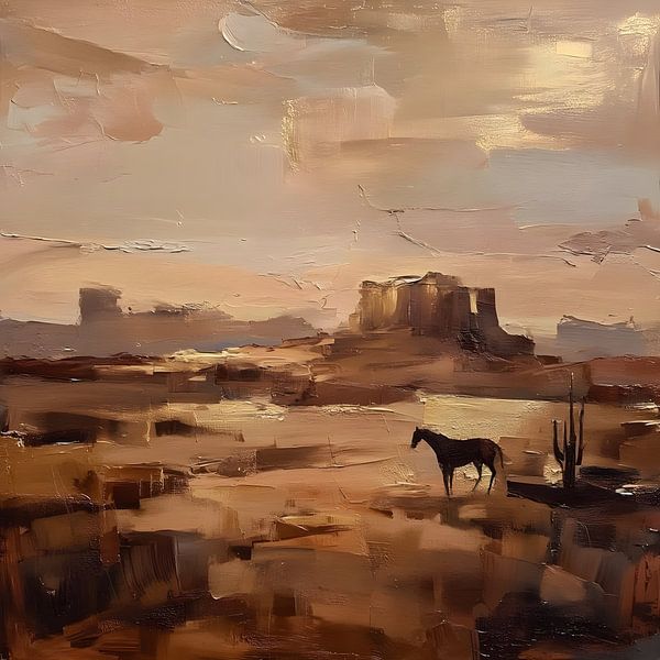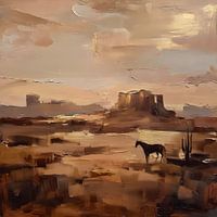 Ervaar de oneindige rust en ruimte van de Amerikaanse prairie, vertaald naar een sfeervol abstract olieverfwerk.