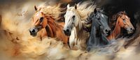 Wilde paarden zijn robuuste, vrij levende paarden die in het wild leven in verschillende delen van de wereld. Ze worden gekenmerkt door hun natuurlijke aanpassingsvermogen aan barre milieuomstandigheden en hun onafhankelijke manier van leven. Deze dieren zijn vaak in kuddes georganiseerd en belichamen de wilde schoonheid en de ongetemde geest van de natuur. Wilde paarden zijn een symbool van vrijheid en hebben een fascinerende geschiedenis die nauw verbonden is met de menselijke cultuur.