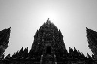 Silhouet van de Prambanan tempels in Jogjakarta, Midden-Java, Indonesië.