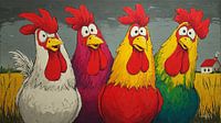 Koop dit Popart kunstwerk Pratende / Zingende Kippen van Gelissen Artworks als print op canvas, aluminium dibond, (ingelijste) fotoprint, behang en ArtFrame. Voor jou op maat geprint in Fine-Art kwaliteit.
