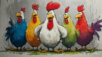 Hang een schilderij van onze pratende en zingende kippen aan je muur – en ontdek hoe kunst je huis niet alleen mooier, maar ook levendiger maakt.