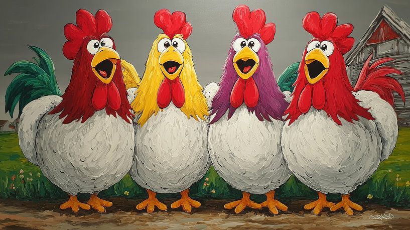 Koop dit digital art kunstwerk Pratende / Zingende Kippen van Gelissen Artworks als reproductie geprint op canvas, aluminium dibond, (ingelijste) fotoprint, behang en ArtFrame. Voor jou op maat geprint in Fine-Art kwaliteit.