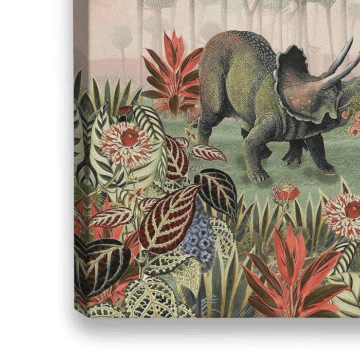 Prehistorie met diverse dinosauriërs. Een retro vintage collage prent in prachtige kleurstelling. Ideaal voor de kinderkamer met een illustratief karakter.