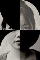 Een portret van een mooie Aziatische vrouw in combinatie met abstracte kunst met ronde en geometrische vormen.