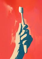 Een poster van een hand die een tandenborstel vasthoudt. De poster is in een retro risograafstijl.