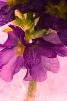 Primrose in kristalhelder ijs, roze gekleurd