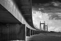 De Prins Willem-Alexanderbrug is een indrukwekkend staaltje architectuur dat niet alleen een belangrijke functie heeft in het dagelijks leven, maar ook een visueel statement maakt. Met deze zwart-wit foto wil ik de kijker uitnodigen om het imposante karakter en de esthetiek van de brug te ervaren en te waarderen.