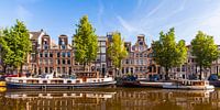 Woonboten en grachtenpanden aan de Prinsengracht in Amsterdam