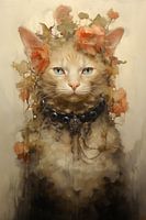 "Prinses Liora van het Bloemenhof" is een majestueuze afbeelding uit de serie "Koninklijke Katachtigen: Het Geheime Hof". Deze delicate katachtige schoonheid wordt omhuld door een sluier van pastelkleurige bloemen die symbool staan voor haar domein: het Bloemenhof. De etherische kwaliteit van de bloemen rondom haar hoofd geeft haar een…