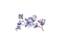 Mooie print van een tak vol roze, gele, blauwe en paarse bloesems. Door het gebruik van zachte aquarel tinten die in elkaar overvloeien krijgt de tak een dromerige uitstraling.