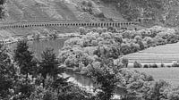 Ik heb gekozen voor een zwart wit bewerking om dat dit het spoorviaduct en de tunnel meer en beter tot zijn recht laat komen. De groen overwegende kleur van de bossen en wijngaarden deden het staaltje architecten kunst geen goed recht aan.