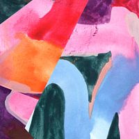 In Prisma botsen twee verschillende sferen op elkaar. Waar strakke geometrische lijnen en vloeiende, zachte kleurvlakken elkaar ontmoeten, ontstaat er een fascinerend visueel spanningsveld. De combinatie van warm oranje en uitgesproken roze tegenover de diepe, koele accenten van donkergroen en blauw, zorgt voor een dynamisch contrast.…