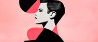 Hier ontvouwt zich een fascinerend spel van vormen en kleuren, waarin een gestileerd hoofd troont tegen een delicate roze achtergrond. De harmonieuze combinatie van zwart en gedurfde accenten geeft het kunstwerk een eigentijdse elegantie. Ideaal voor in de woonkamer om een artistiek accent te leggen en een gesprek op gang te brengen.
