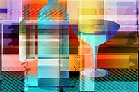 Kubistisch. Digitale kunst. Flessen en glazen op tafel.