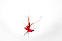 Een lekker klotsende rode wijn, spetterend uit het glas. 2 glazen kletteren tegen elkaar zodat de wijn alle kanten op geslingerd wordt. Tijdens het fotograferen een lekkere kliederboel gemaakt in de studio.