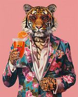 Koop dit leeuwen kunstwerk Proost met de Modetijger van ByNoukk op canvas, aluminium dibond, (ingelijste) fotoprint, behang en ArtFrame, op maat geprint in Fine-Art kwaliteit.