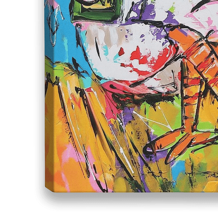 "Proostende Kleurrijke Kippen" is niet alleen een schilderij; het is een levendig symbool van optimisme en feestelijkheid. Het brengt niet alleen een ruimte tot leven, maar ook de harten van degenen die het aanschouwen. Een meesterwerk dat de kunst van het vieren omarmt en elke dag een schitterende festiviteit laat zijn.
