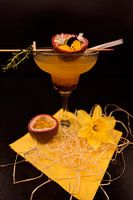 Prosecco met cassis siroop en verse passievrucht. Heerlijke en fruitige cocktails geserveerd in glazen
