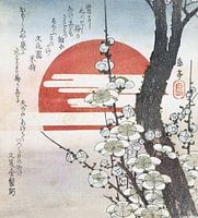 De stam van een pruimenbloesem met enkele takken in bloei. Met twee gedichten.