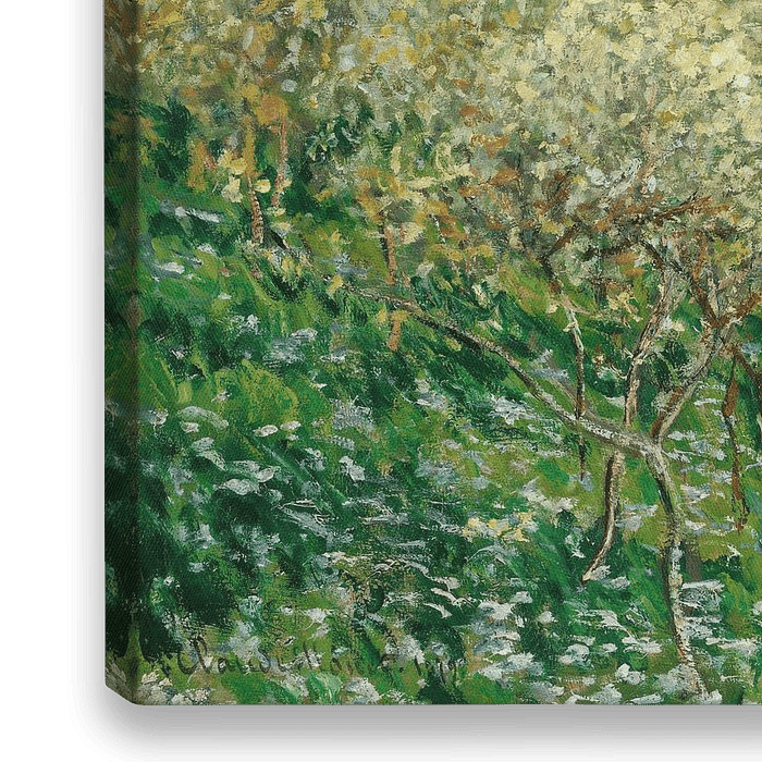 Koop Pruimenbomen in bloesem, Claude Monet als reproductie geprint op canvas, aluminium dibond, (ingelijste) fotoprint, behang en ArtFrame. Voor jou op maat geprint in Fine-Art kwaliteit.