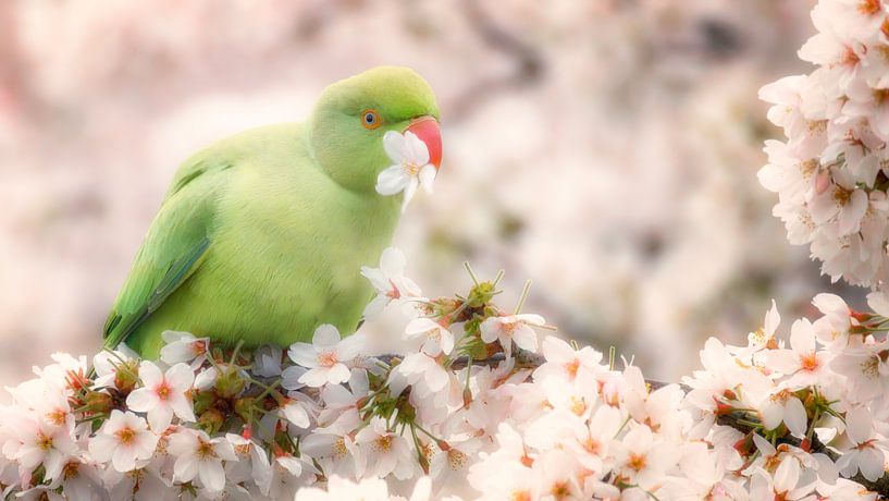 Deze halsbandparkiet trof ik aan in een bloeiende prunus aan het Cramwinkelplantsoen in Purmerend. Hij zat hoger in de boom en plukte steeds bloem na bloem van de boom om ze daarna te laten vallen. Geen idee waarom. Hij at ze niet op. Maar hij haalde ze weg en liet ze steeds vallen. Hij was niet alleen trouwens. Er zaten er nog drie,…