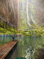 Het concept van de uitgeholde asteroïde is beschreven door sciencefictionauteurs als Greg Bear, Arthur C. Clarke en Kim Stanley Robinson. In deze artist impression staan we aan de oever van een van de vele meren in de asteroïde 16 Psyche. Twee mannen bevinden zich op een houten steiger, een zwaan spreidt zijn vleugels, een zeilboot…