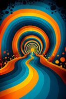 Dompel jezelf onder in een psychedelische reis door een hypnotiserende tunnel. Levendige kleuren en golvende patronen creëren een betoverend schouwspel dat je meeneemt naar een andere dimensie. Dit kunstwerk is een uitnodiging om te ontsnappen aan de realiteit en je te laten meevoeren door de stroom van je verbeelding. Een perfecte aanvulling voor een Modern, eclectische of futuristische inrichting.