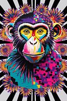 Dit opvallende en levendige ontwerp laat een kleurrijke aap zien die perfect past in moderne en creatieve interieurs. Met een mix van felle tinten zoals geel, paars, roze en blauw springt het meteen in het oog. De aap is centraal afgebeeld, omringd door psychedelische bloemen die het geheel een speelse en dynamische uitstraling geven. Dit kunstwerk combineert dieren met abstracte vormen en levendige kleuren, waardoor het een echte blikvanger is in iedere ruimte. Of het nu gaat om een kantoor of een woonkamer, dit unieke ontwerp brengt energie en kleur in elke omgeving. Het is een perfecte keuze voor liefhebbers van eclectische en moderne kunst.