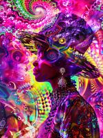 Fractals zijn geometrische patronen die zich op verschillende schalen herhalen. Ze hebben een grote betekenis in de natuur, kunst en wetenschap. In de mode kunnen fractals een bron van inspiratie, esthetiek en innovatie zijn. De Mandelbrotverzameling, ook bekend als de Apple Man, wordt bijvoorbeeld gebruikt als print of borduursel op kleding om een moderne en futuristische look te creëren. De afbeelding neemt het fractalthema en ontwerpt het met behulp van kunstmatige intelligentie.