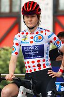 Puck Pieterse in de bolletjes trui tijdens de ronde van Frankrijk 2024. Deze multi getalenteerde renster is zowel op de cyclocross fiets, als de mountainbike en de racefiets actief en kan al aardige adelbrieven voorleggen. Haal nu deze unieke foto in huis.