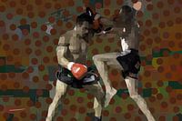 Fotobewerking van een foto van een bokswedstrijd in groen, rood en bruin.