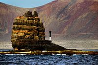 Meest noordelijke rotspuntje van Lanzarote, Punta de Fariones, met kleine vuurtoren, gepasseerd onderweg naar het kleinere Isla Graciosa, wat ten noorden hiervan is gesitueerd.