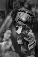 Speelpoppen in zwart wit. Puppets on a string. Nostalgie
