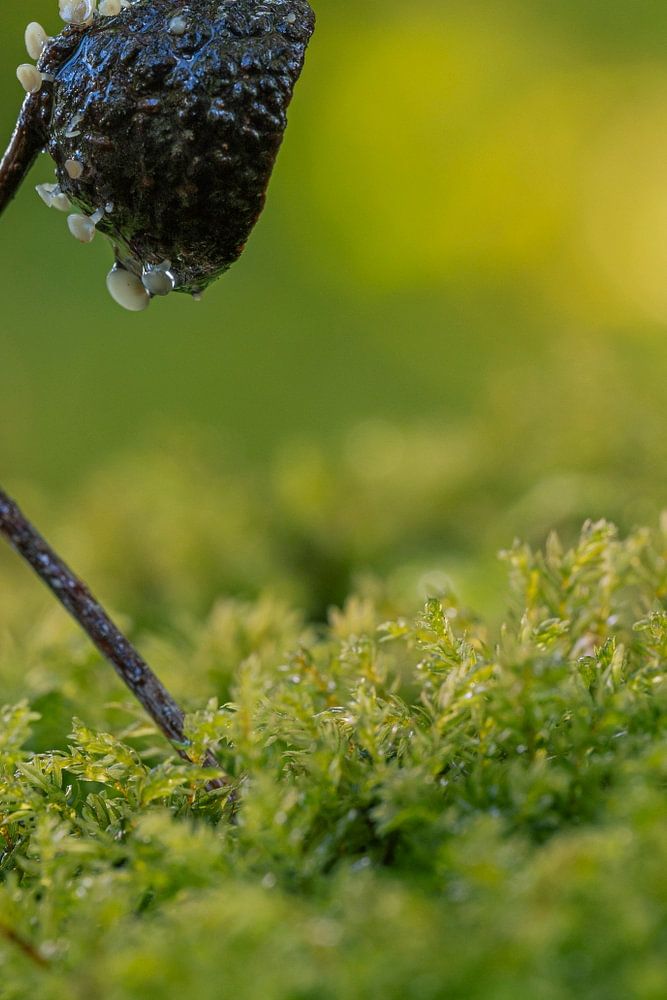 De natuur maakt zijn eigen kunstwerken! Dit werk toont een eikentakje met een eikelhoedje staande in het mos. Op het eikelhoedje zijn piepkleine zwammetjes te zien. Het geheel heeft zich als een een natuurlijk stukje kunst ontpopt. Het donkerbruine eikelhoedje steekt fraai af tegen de groen gemêleerde omgeving waar het zonlicht zacht en speels het licht verdeeld.
