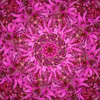 De echinacea purpurea, ook wel de rode zonnehoed genoemd, is populair in parken en tuinen. Aan de plant worden ook geneeskrachtige kwaliteit toegedacht. Ik maakte een foto van een veld met echinachea's en bewerkte die tot een kaleidoscopie.