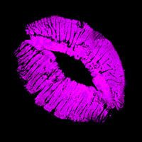 Pop art afdruk van een zoen met verschillende kleuren lippenstift.