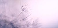 Macrofoto van een paardenbloempluisje met zachte dromerige pastel paarse tinten.