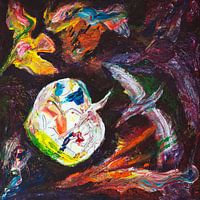 Abstract schilderij met acrylverf. Langzaam ga je steeds meer zin in het schilderij en er steeds meer van houden.