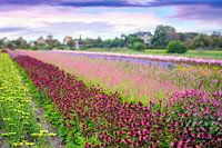 In Noordwijkerhout een bloemenveld vol met de bloem Echinacea, oftewel de zonnehoed bloem. Je ziet ze in vele kleuren en is hier mooi in kleur bij de invallende avond.