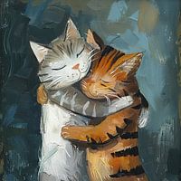 Details: katten, knuffel, vriendschap, liefde, kleurrijk, speels, dier, canvas, kunst, huisdier