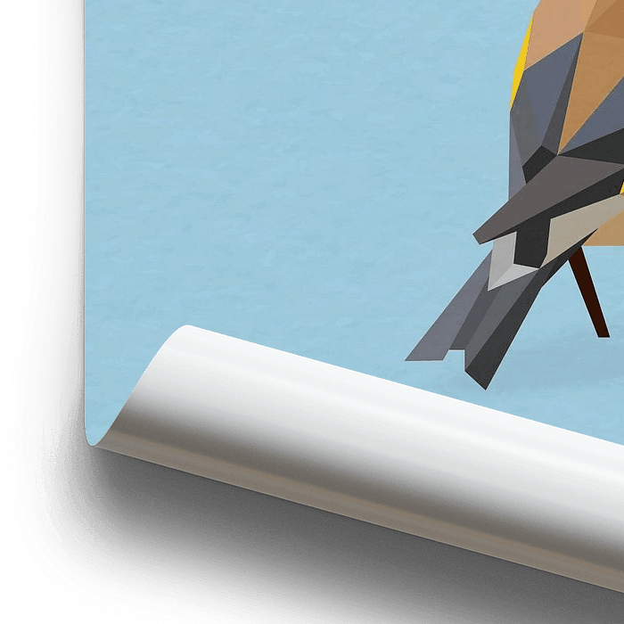 Putter, vogel, tuinvogel, geometrisch, abstract, moderne kunst, low poly, polygoon, geometrisch, blauw, geel, dieren, illustratie, vlakken, digitale kunst, puttertje, zangvogel, vogels,