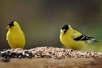 Putters bij de tuinvoederbak van Claude Laprise