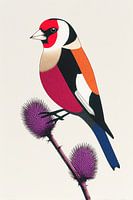 Kleurrijke Vogel op Distel — Grafisch Portret combineert de schoonheid van een vogel met een strak, modern ontwerp.