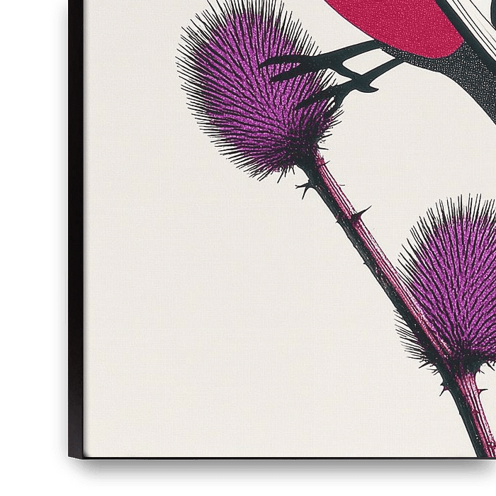 Kleurrijke Vogel op Distel — Grafisch Portret combineert de schoonheid van een vogel met een strak, modern ontwerp.