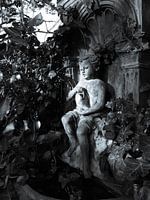 Grafmonumentje op de algemene begraafplaats Den Haag. Putto figuurtje in een straal zonlicht.