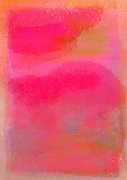 Een abstract schilderij waarin veel te ontdekken valt door interessante structuren en warme kleuren.