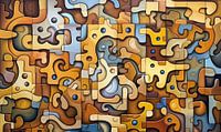 Abstracte surrealistische puzzel in aardetinten.