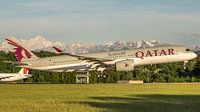 Een perfect heldere dag en een mooi vliegtuig, dat was nodig voor deze foto. De Mont Blanc (hoogste berg van Europa) is namelijk op 75 kilometer van het vliegveld gelegen. Het geluk was aan mijn zijde en een uur voor zonsondergang kwam het nieuwste model Airbus, de Airbus 350 binnen op de luchthaven van Geneve.